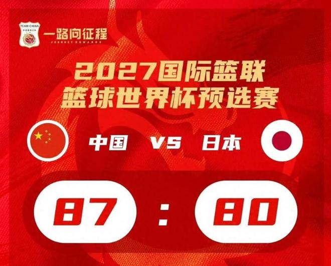 最终,中国男篮以87:80的比分战胜了日本队,取得了预选赛开始以来的首胜。