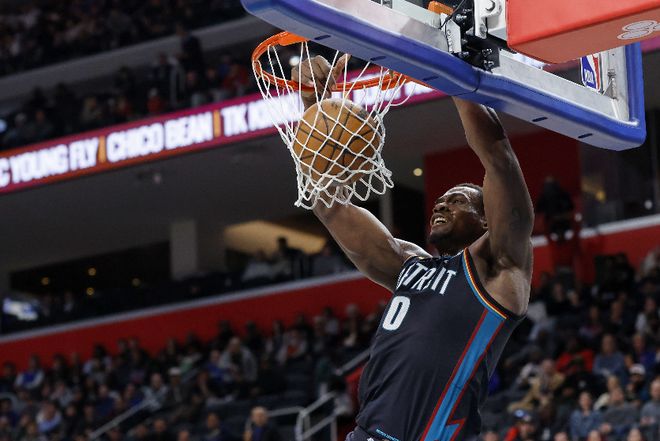 全场数据,活塞队这边,杜伦19中11,拿到33分16篮板3助攻3盖帽;坎宁安6犯离场,21中11拿到25分10篮板7助攻2抢断4失误。