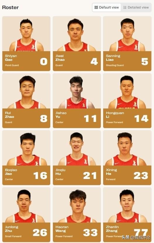 中国男篮:高诗岩、赵继伟、廖三宁、赵睿、余嘉豪 、李弘权、焦泊乔、胡金秋、贺希宁、朱俊龙、王浩然、张镇麟。