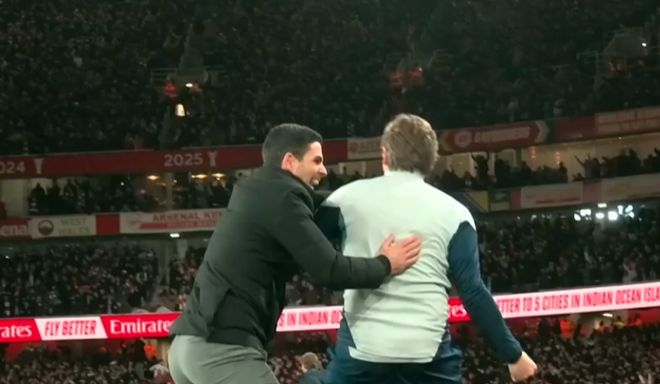 进球之后,特罗萨德滑跪庆祝,并且做出了望远镜的庆祝动作。而在特罗萨德打破僵局之后,阿尔特塔异常兴奋的庆祝,不断拍打助教。