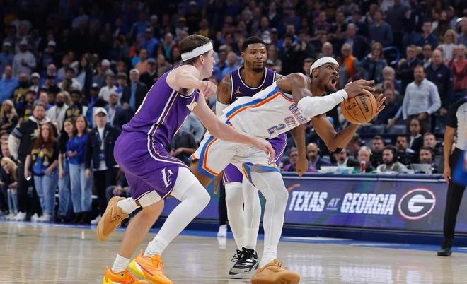 北京时间11月13日,NBA常规赛,雷霆坐镇主场迎战湖人。本场比赛之前,湖人8胜3负排名西部第3;虽然说湖人开局战绩很好,但总感觉他们在场上的统治力没有那么强,赢球基本靠东契奇和里夫斯爆种;这俩人一状态不好,球队就会快速崩盘。此外,湖人的投篮命中率联盟第一,但防守效率却在联盟倒数,防守还是有问题。