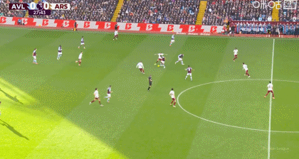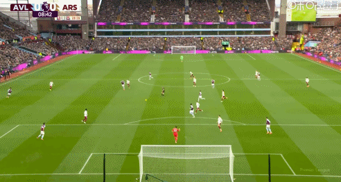 第42分钟,萨卡强突回传,本-怀特打门被没收