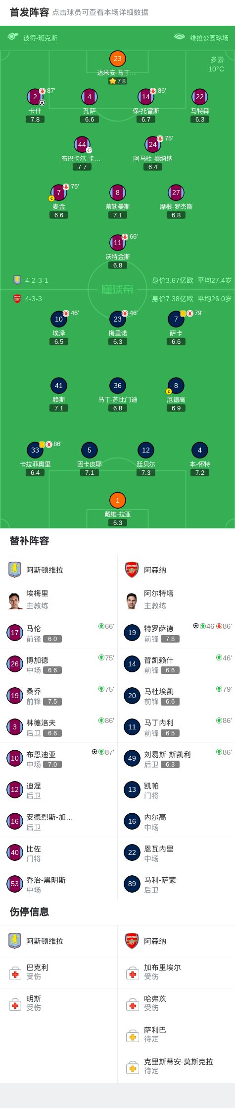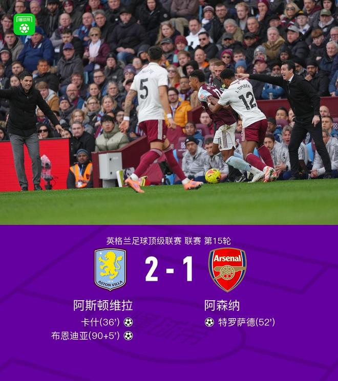 北京时间12月6日20:30,英超第15轮焦点战,阿森纳作客维拉公园球场挑战阿斯顿维拉,本场主裁判为彼得-班克斯。上半场,卡什小角度凌空破门。下半场,特罗萨德扳平比分,布恩迪亚读秒献绝杀。最终,阿森纳客场1-2不敌维拉。
